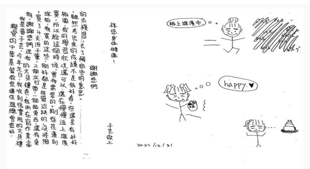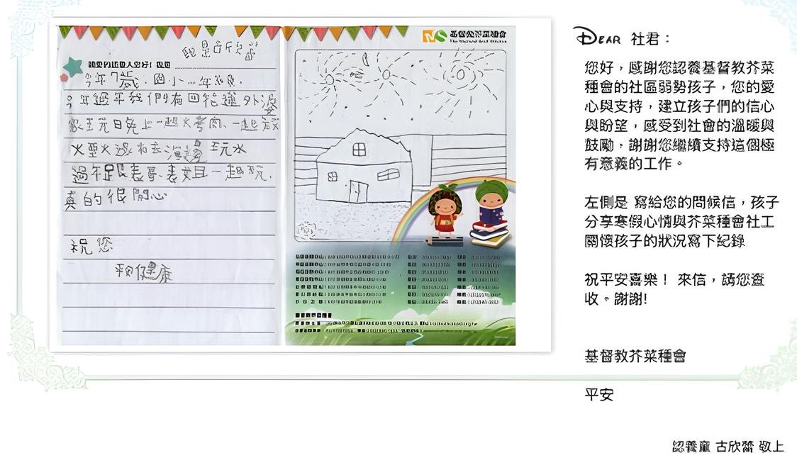 2022年透過芥菜種會幫助社區弱勢的孩子-古O蕾,很感動收到 […]