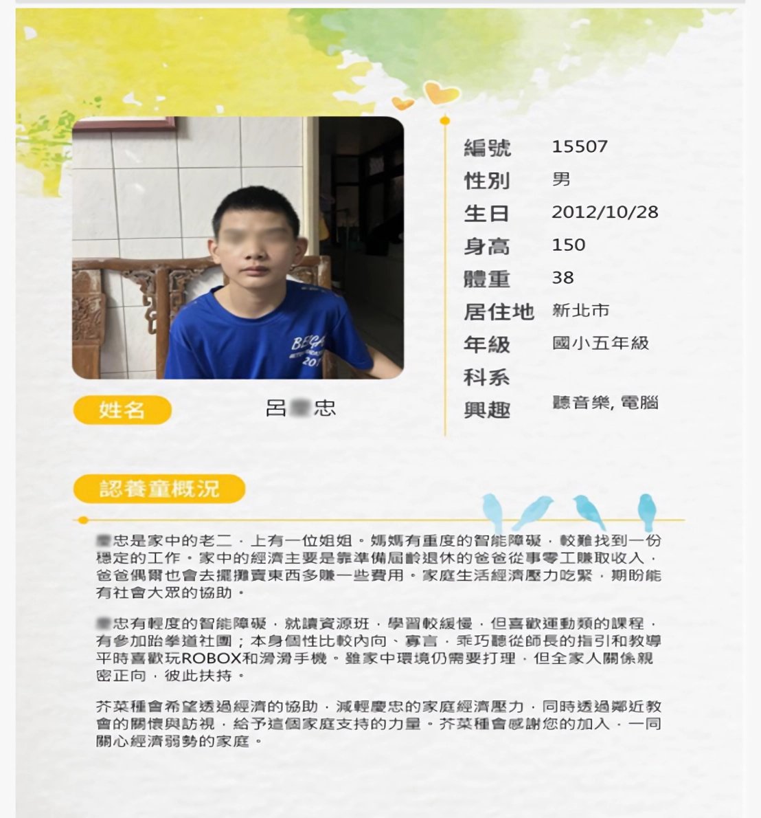 透過芥菜種會幫助社區弱勢的孩子–陳O崴